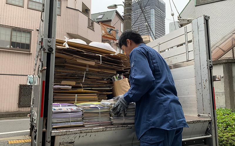 品川区内の古紙(新聞・雑誌類・段ボール等)、鉄スクラップ、びん、缶、什器などの回収をお任せ下さい。機密書類の回収、処理も承っています。